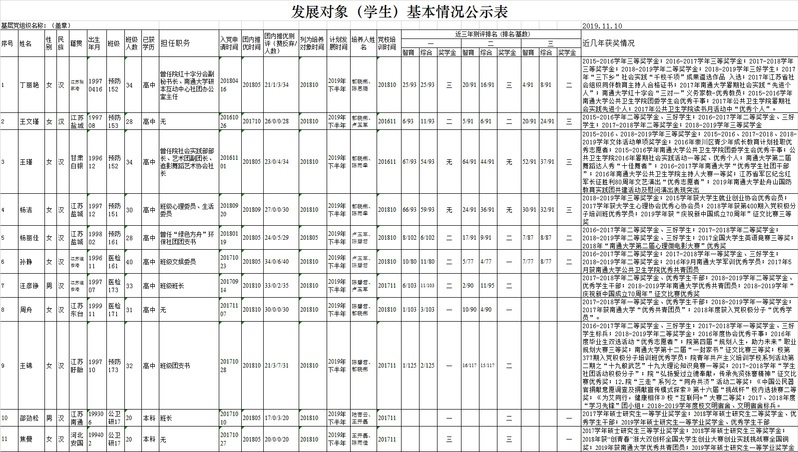 经党支部考察和研究,PA视讯公司党委拟于近期讨论接收丁丽艳、王文瑾、王瑾、杨洁、杨丽佳、孙静、汪彦铮、周舟、王锦、邵劲松、焦曼等11位同志为中共预备党员。现将这11位同志的基本情况予以公示(详见附件),敬请党员、群众监督,如有意见和建议请于11月19日前向公司党委或公司党委组织部反映。