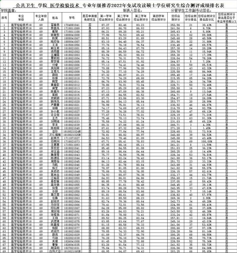 现将《推荐免试攻读硕士学位研究生综合测评成绩排名表》予以公示,敬请大家监督。如有意见和建议,请于9月17日前联系公司党委或员工工作处反映。
