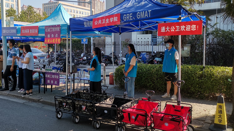 在公司北一门设置的志愿服务点和行李寄存处,公司领导、辅导员和“江海健康青年学习社”志愿者们不辞辛苦,积极开展返校志愿服务。他们或站在校门口迎接返校同学,或指导返校同学扫码进校,亦或主动帮助返校同学将行李运送至对应园区……志愿者们用满腔热情和实际行动展现了公卫学子的青春风采,更将志愿服务精神体现得淋漓尽致。