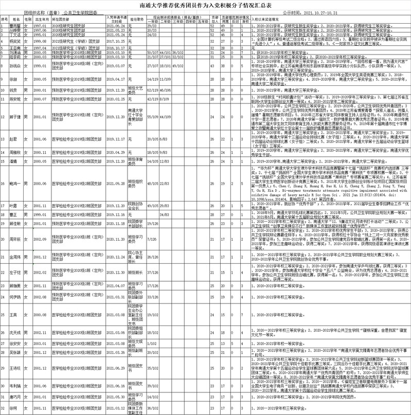 现将推荐情况予以公示,公示时间:10月27日-10月31日。