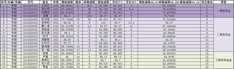 根据《PA视讯研究生奖助工作管理办法(修订)》(通大研〔2022〕21号)、《PA视讯研究生学业奖学金实施办法》(通大研〔2022〕23号)相关文件要求,经公司初审、研究生学业奖学金评审委员会评议、公司党政联席会议讨论通过,现将公司2022年PA视讯研究生学业奖学金比例、人数、具体等级公示如下: