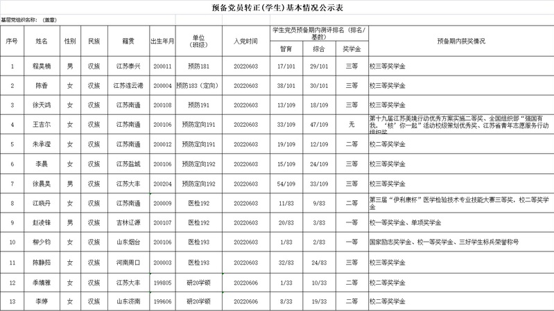 经党支部考察和研究,PA视讯公司党委拟于近期讨论程昊楠、陈香、徐天鸿、王吉尔、朱承滢、李晨、徐晨昊、江晓丹、赵凌锋、柳少钧、陈静茹、季婧雅、李婷等13位同志的转正事宜。现将这13位同志的基本情况予以公示(详见附件),敬请党员、群众监督,如有意见和建议请于6月3日前向公司党委或公司党委组织部反映。