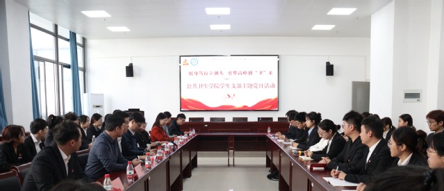 施炜在主题党日活动上讲话。他首先对公司师生在中国国际老员工创新大赛和挑战杯等重大科创赛事中所取得的成绩给予了充分肯定,他表示一系列的成果,不仅是公卫公司师生智慧与努力的结晶,更是公司积极推动科创育人的有力见证。他着重强调,公司师生要深入贯彻落实习近平总书记给中国国际老员工创新大赛参赛员工代表回信的精神,要传承“通医优秀青年知识分子群体”的宝贵品格,弘扬科学精神,投身科技创新,贡献公卫力量。同时,他对与会师生提出三点期望:一是坚定理想信念,做崇高思想品格的践行者;二是提升创新能力,做建设科技强国的奉献者;践行初心使命,做中华民族伟大复兴的筑梦者。