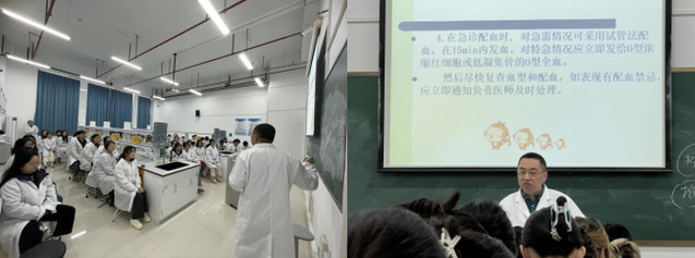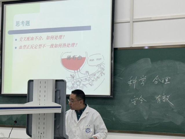 丛老师以“科学、合理、安全、有效”八个字为主题,向同学们讲授了血型鉴定以及交叉配血。他丰富的临床经验和严谨的职业素养,吸引了在场所有的教师和同学,每一次血型鉴定和交叉配血背后都是一条鲜活的生命,激励大家要认真严谨地对待医学事业,为建设健康中国贡献青春力量。