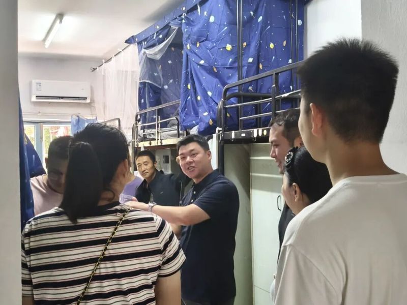 当天,公司领导和老师走进新生宿舍,与同学们亲切交流,关心他们的生活适应情况,耐心解答学习上的疑问,并勉励大家营造团结互助的宿舍氛围,珍惜韶华,共同描绘充实而精彩的大学篇章。