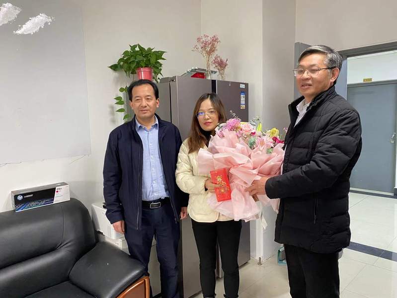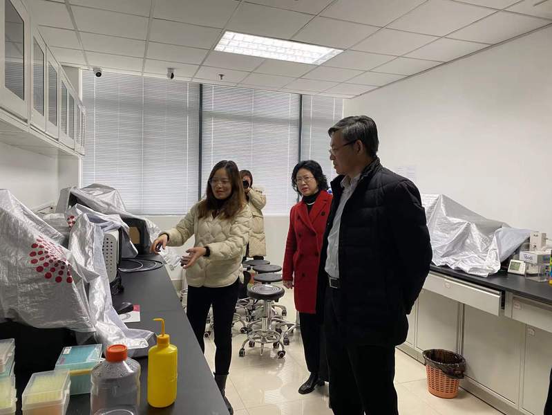 浦书记一边走访实验室,一边详细仔细询问团队工作进展和发展需求,感谢大家为公司事业发展做出的努力,并代表公司对我们取得的标志性成果表示祝贺,向团队成员表达了新春祝福。吴丽教授代表团队感谢公司的关心与支持,表示将一如既往带领团队成员全身心投入到工作和科研中,以更多优异成绩为公司“8050计划”添砖加瓦。
