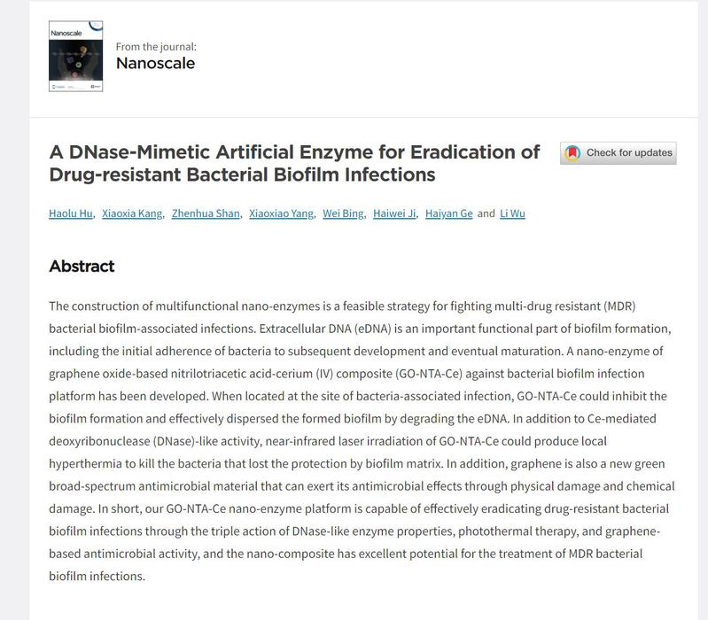 祝贺冀海伟老师文章被Nanoscale杂志接收发表!