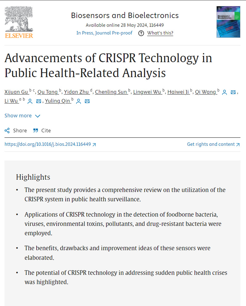 祝贺顾锡娟同学文章被Biosensors and Bioelectronics杂志接收