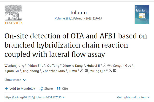 祝贺蒋汶君同学文章被Talanta杂志接收