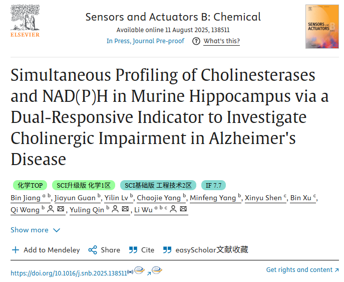 祝贺蒋斌同学文章被Sensors and Actuators B: Chemical接收!